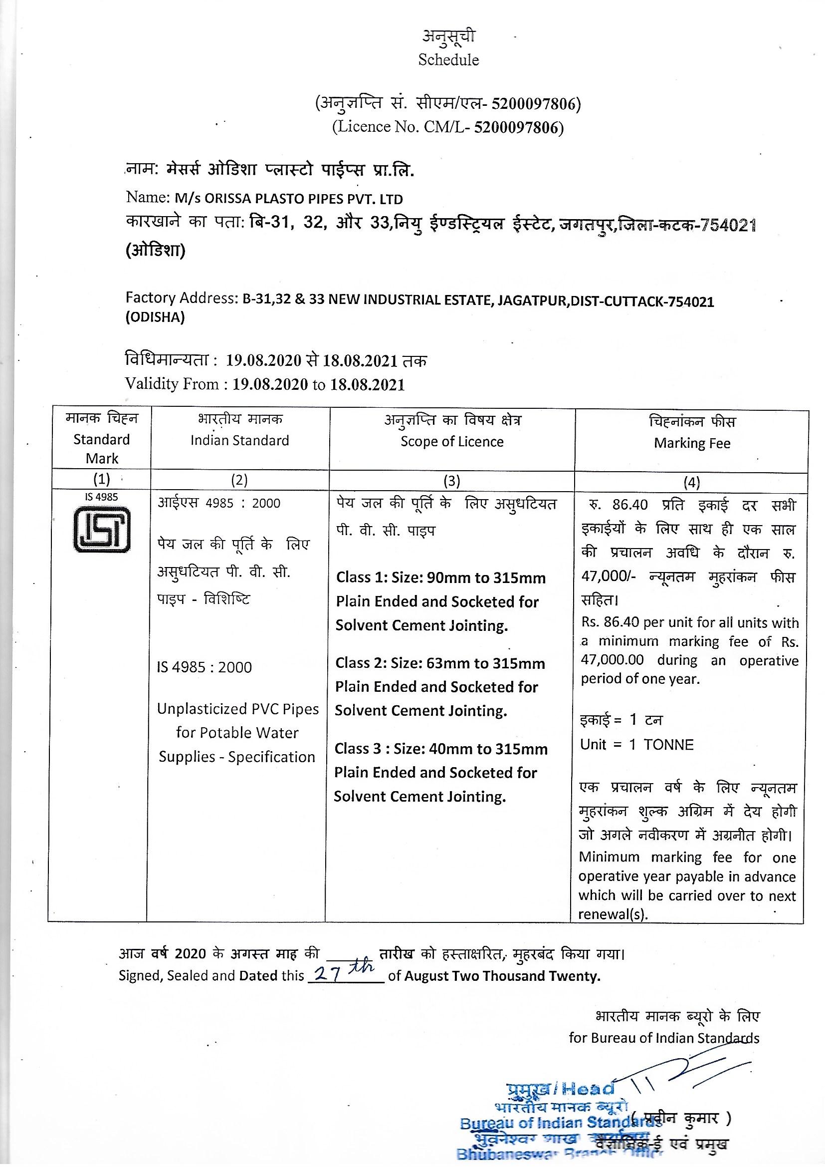 UNPLASTICIZED PVC PIPES FOR PORTABLE WATER SUPPLIES AS PER IS: 4985 : 2000 FOR 25MM TO 315MM