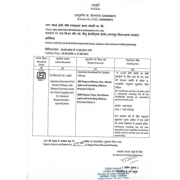 UNPLASTICIZED INJECTION MOULDED PVC SOCKET FITTINGS WITH SOLVENT CEMENT JOINTS FOR WATER SUPPLIES & GENERAL REQUIREMENTS AS PER IS :7834 (PART-1) : 1987