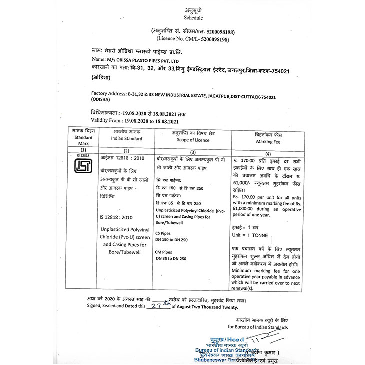 UNPLASTICIZED POLYVINYL CHLORIDE (PVC-U) SCREEN & CASING PIPES FOR BOREWELL & TUBEWELL AS PER IS: 12818:2010